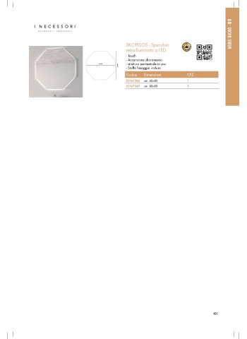 MOBILI BAGNO - 01 SKOPELOS - Specchio retroilluminato a LED - Touch - Accensione sfioramento - struttura perimetrale in pvc - Staffe fissaggio incluso Codice Dimensioni CFZ 03167386 cm. 60x80 1 03167387 cm. 80x80 1 101