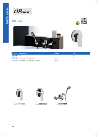 RUBINETTERIA BAGNO - 04 SERIE NOVE Codice Descrizione Colore CFZ 03219823 Mix incasso doccia cromo 1 03219824 Mix incasso doccia c/deviatore cromo 1 03219825 Mix esterno vasca c/doccetta orientabile cromo 1 184
