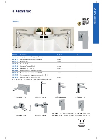 N.B. Per comporre il mix incasso doccia sommare corpo incasso e piastra.