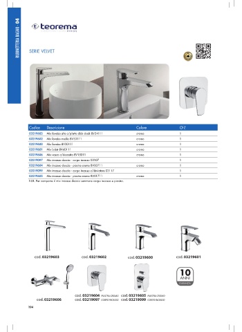 RUBINETTERIA BAGNO - 04 SERIE VELVET