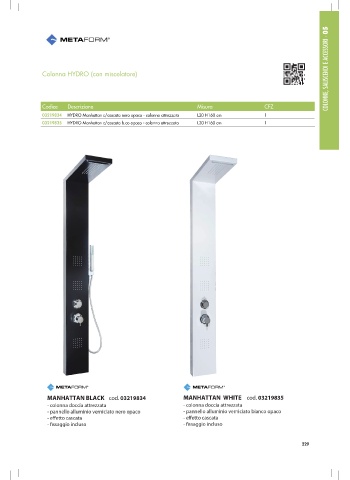 03219835 HYDRO Manhattan c/cascata b.co opaco - colonna attrezzata L20 H160 cm 1