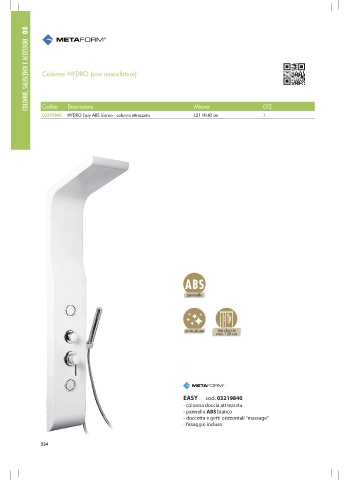 COLONNE, SALISCENDI E ACCESSORI - 05 Colonne HYDRO (con miscelatore) Codice L21 H140 cm 1 HYDRO Easy ABS bianco - colonna attrezzata 03219840 Descrizione Misura CFZ 234