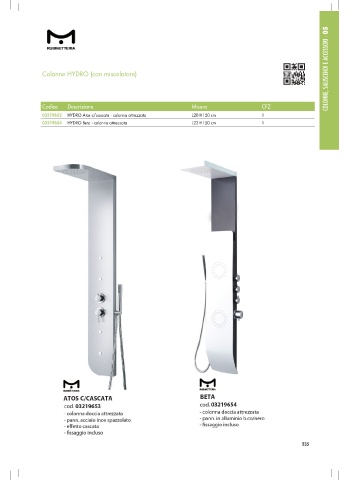 COLONNE, SALISCENDI E ACCESSORI - 05 Colonne HYDRO (con miscelatore) Codice Descrizione Misura CFZ 03219653 HYDRO Atos c/cascata - colonna attrezzata L20 H150 cm 1 03219654 HYDRO Beta - colonna attrezzata L22 H150 cm 1 235
