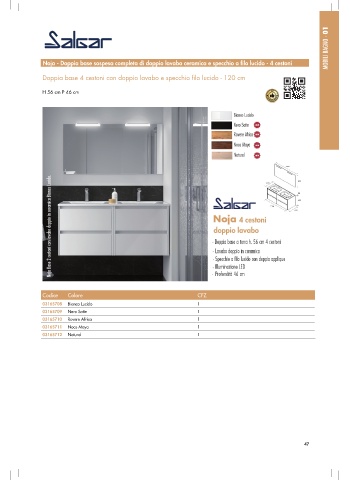 Noja - Doppia base sospesa completa di doppio lavabo ceramica e specchio a filo lucido - 4 cestoni