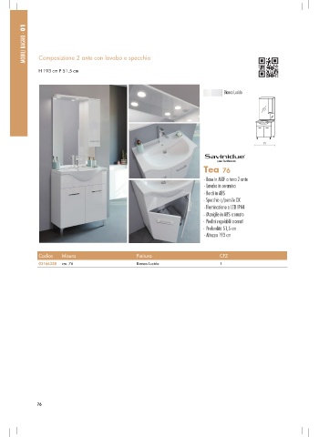 MOBILI BAGNO - 01 Composizione 2 ante con lavabo e specchio H 193 cm P 51,5 cm Codice Misura Finitura CFZ 03166338 cm. 76 Bianco Lucido 1 76