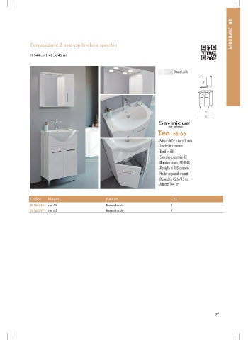 MOBILI BAGNO - 01 Composizione 2 ante con lavabo e specchio H 144 cm P 42,5/45 cm Codice Misura Finitura CFZ 03166336 cm. 55 Bianco Lucido 1 03166337 cm. 65 Bianco Lucido 1 77