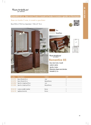 ROMANTICA 85 cm - Base a terra 2 ante e 4 cassetti con lavabo in ceramica e specchio con illuminazione