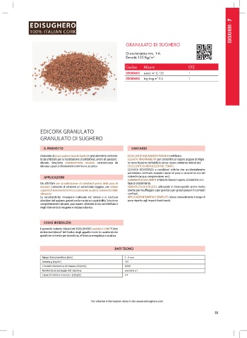 EDISUGHERO - 7 GRANULATO DI SUGHERO Granulometria mm. 1-4; Densità 135 Kg/m 3 Codice Misura CFZ 02080603 sacco m 0,125 1 3 02080604 big-bag m 2,5 1 3 25