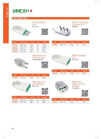 02000009 2P+T 16 A Nero 10 50 pz 02000010 2P+T 16 A Bianco 5 25 pz