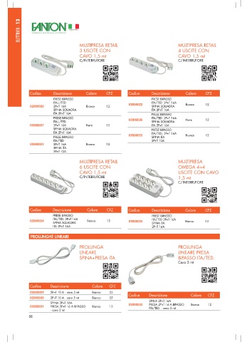 02000029 2P+T 10 A - cavo 3 mt Bianco 25 Codice Descrizione Colore CFZ