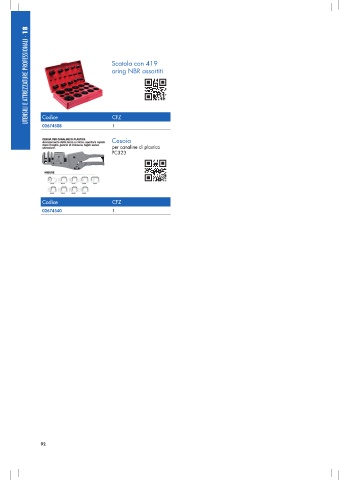 UTENSILI E ATTREZZATURE PROFESSIONALI - 18 Scatola con 419 oring NBR assortiti Codice CFZ 02674508 1 Cesoia per canaline di plastica PC323 Codice CFZ 02674540 1 92