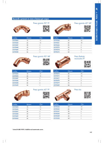 Press gomito 90° FF Press gomito 45° MF RACCORDI PER RAME A PRESSARE - PROFILO “V” - 29