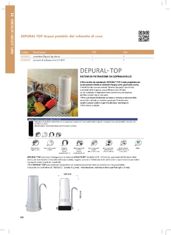POMPE, ACCESSORI E ANTINCENDIO - 32 DEPURAL TOP Acqua potabile dal rubinetto di casa Codice contenitore Depural top bianco 1 1 02230231 Descrizione CFZ Qm 02230232 cartuccia di carbone attivo 0,3 MCR 1 1 190