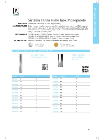 La canna fumo inox monoparete ha garanzia 10 ANNI CANNE FUMARIE IN ACC INOX MONOPARETE - 37